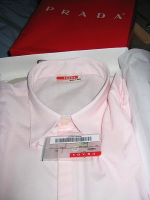 For Sale: Prada shirts Originals, size Large only, these are Italian size L so maybe they could pass for English size M. Colours Pink as shown and light yellow. £25
